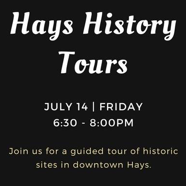 Explore the Chestnut Street District with the Hays Public Library. Docents from the library’s staff will be leading tours of historic downtown Hays at 6:30 pm, 7 pm and 7:30 pm on Friday, July 14. Tours are open to all ages and will leave from the library’s main (west) entrance. No reservation is needed.