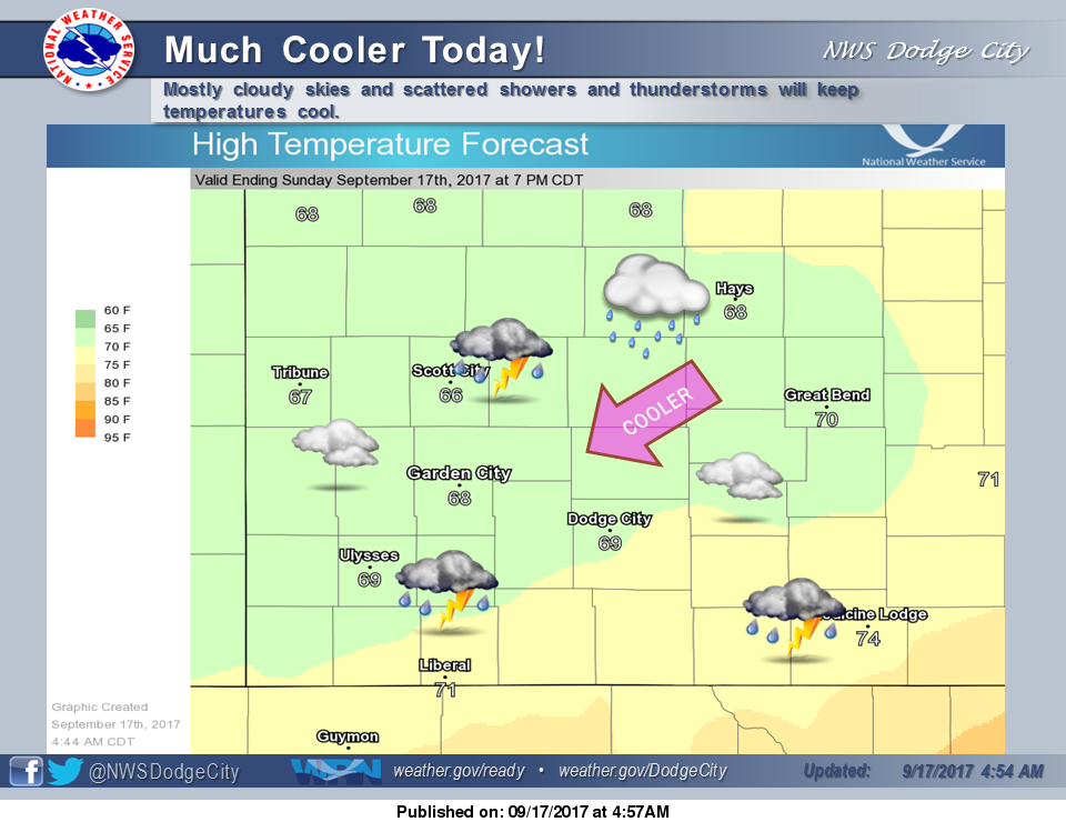 Showers and thunderstorms likely, mainly before 2pm. Mostly cloudy, with a high near 68. North northeast wind 13 to 15 mph. Chance of precipitation is 60%. New rainfall amounts of less than a tenth of an inch, except higher amounts possible in thunderstorms.