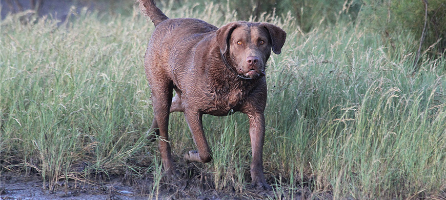 Dogs are usually exposed to the toxins by drinking the HAB-affected water. However, they may still be exposed if they walk on, roll in or eat decaying algae along the shore or retrieve a bird with algae on its feathers.