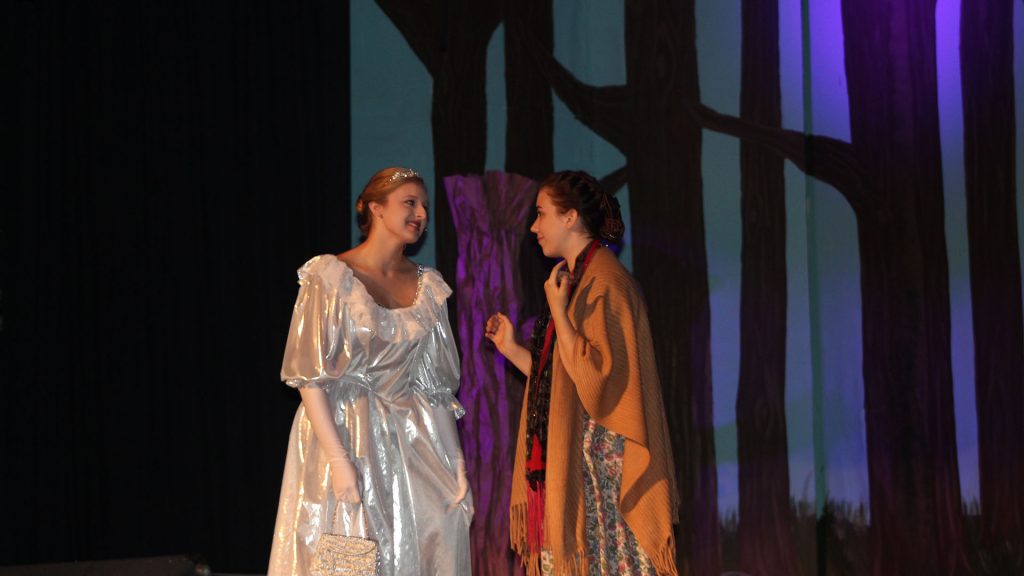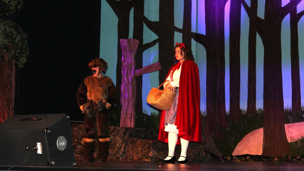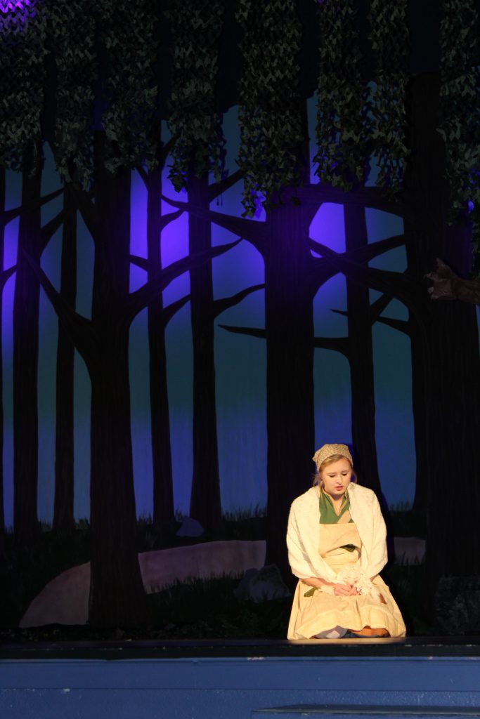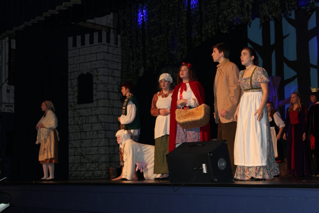 The students preformed the first act of the play for Holy Family students Tuesday morning. After the first act much is rosy in the mystical fairytale land of “Into the Woods.” However, the musical takes a darker turn in the second act and addresses more adult themes.