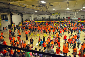 Students and staff wearing orange met for a group picture. The goal of Unity Day and Mix It Up day is to include others, be open to form new friendships and stand together against bullying.