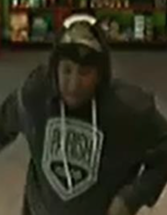 The suspect then ran from the store towards the north east on foot. The suspect was described as a black male approximately 6-foot tall and a large build. He was wearing black shoes with white soles, a grey hoodie with white markings on the chest, and blue shorts.