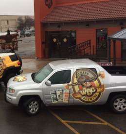 The vehicle had graphics on the side of the vehicle for Wichita Brewing Company.