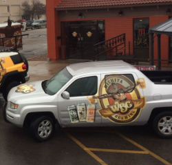 The vehicle had graphics on the side of the vehicle for Wichita Brewing Company.