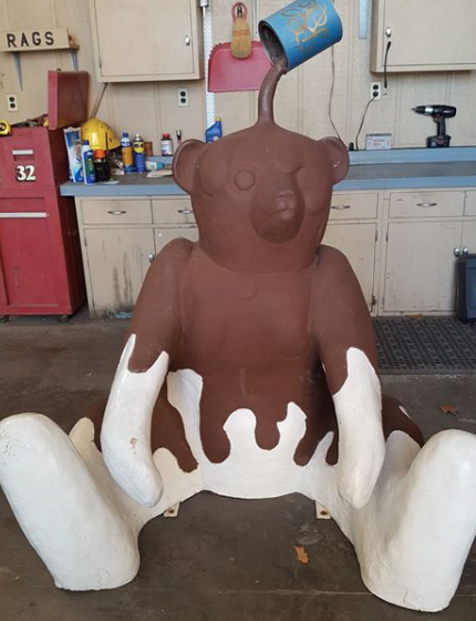 The Russell Stover Candies bear taken during the overnight hours of November 4th, 2016 from in front of their factory in Abilene is back.