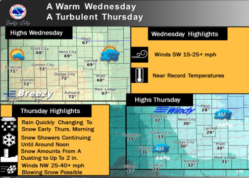 Sunny, windy Wednesday with snow on the way