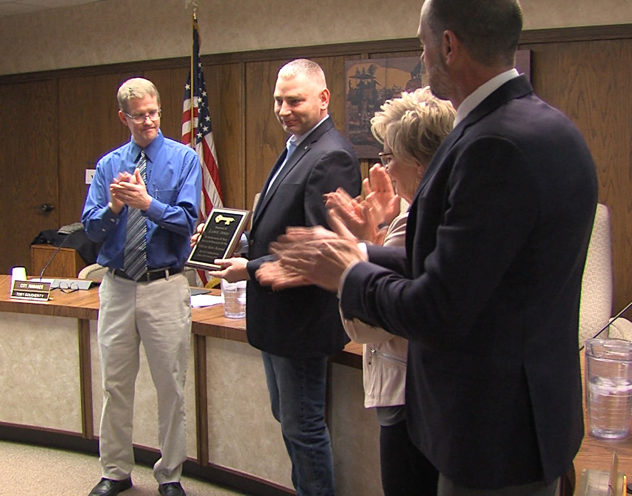 Shaun Musil was also presented a commemorative gavel for serving as mayor. James Meier, previously the vice-mayor, was chosen to serve as mayor while Henry Schwaller was selected as vice-mayor.