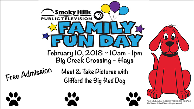 BUNKER HILL – Smoky Hills Public Television’s Family Fun Day will return to Hays next month. This free event will be held at Big Creek Crossing, 2918 Vine, Sat., February 10 from 10 a.m. to 1 p.m.
