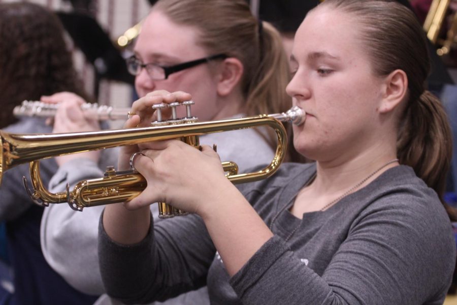 “Both (marching band and pep band) are really fun, but if I had to choose I guess I would say pep band because it’s inside and I don’t have to learn marching routines,” sophomore Michaela Austin said.