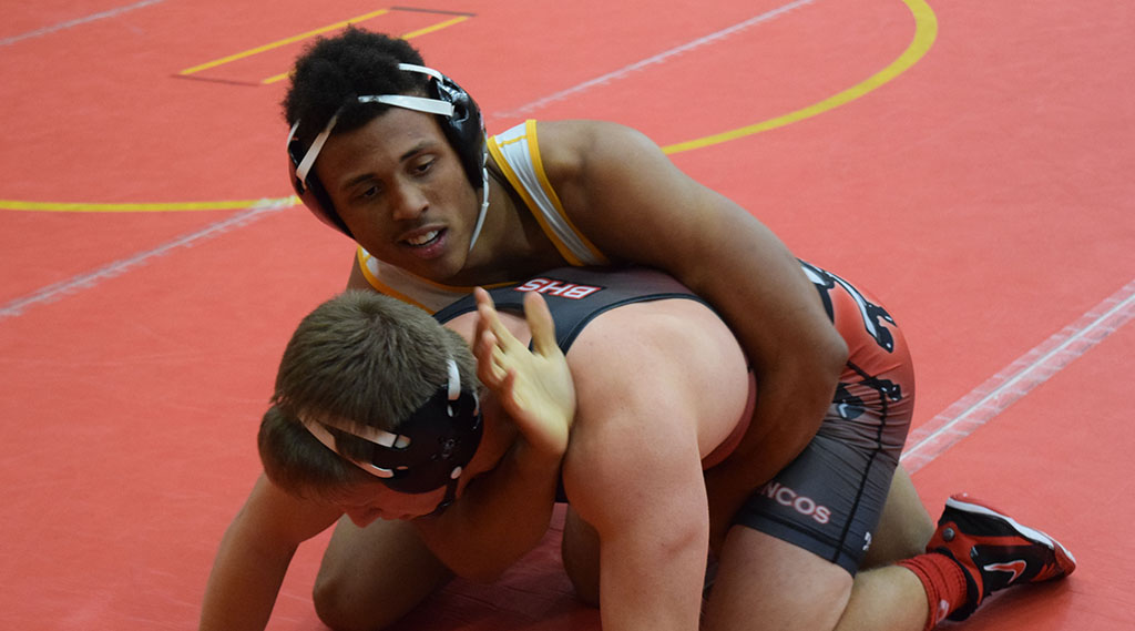 Senior Rakim Dean captured the 197-pound weight class championship with two technical fall victories and a major decision in the title bout to end his day with a 3-0 record.