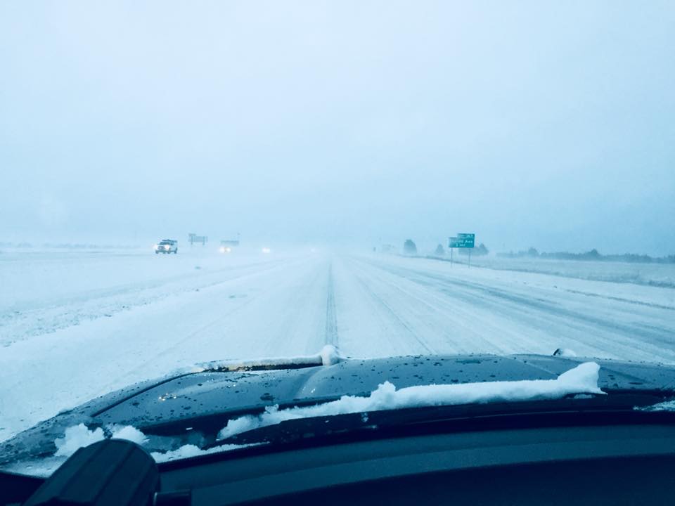 It would be best if you could delay your travel until later in the day when KDOT has a chance to clear all roads!