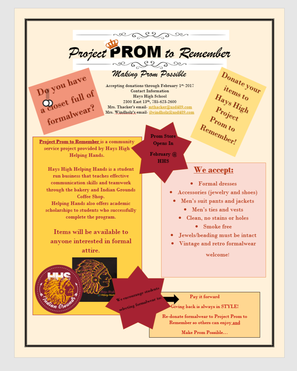 The Hays High School group Helping Hands is getting ready to host its first Project Prom to Remember. The group wanted to give back to the school community and offer a service that will help Hays High School and other high school students.