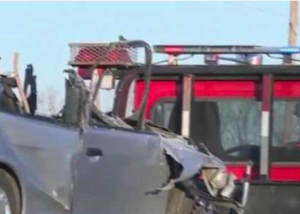 The Honda involved Thursday’s crash being removed from the scene-photo courtesy KWCH
