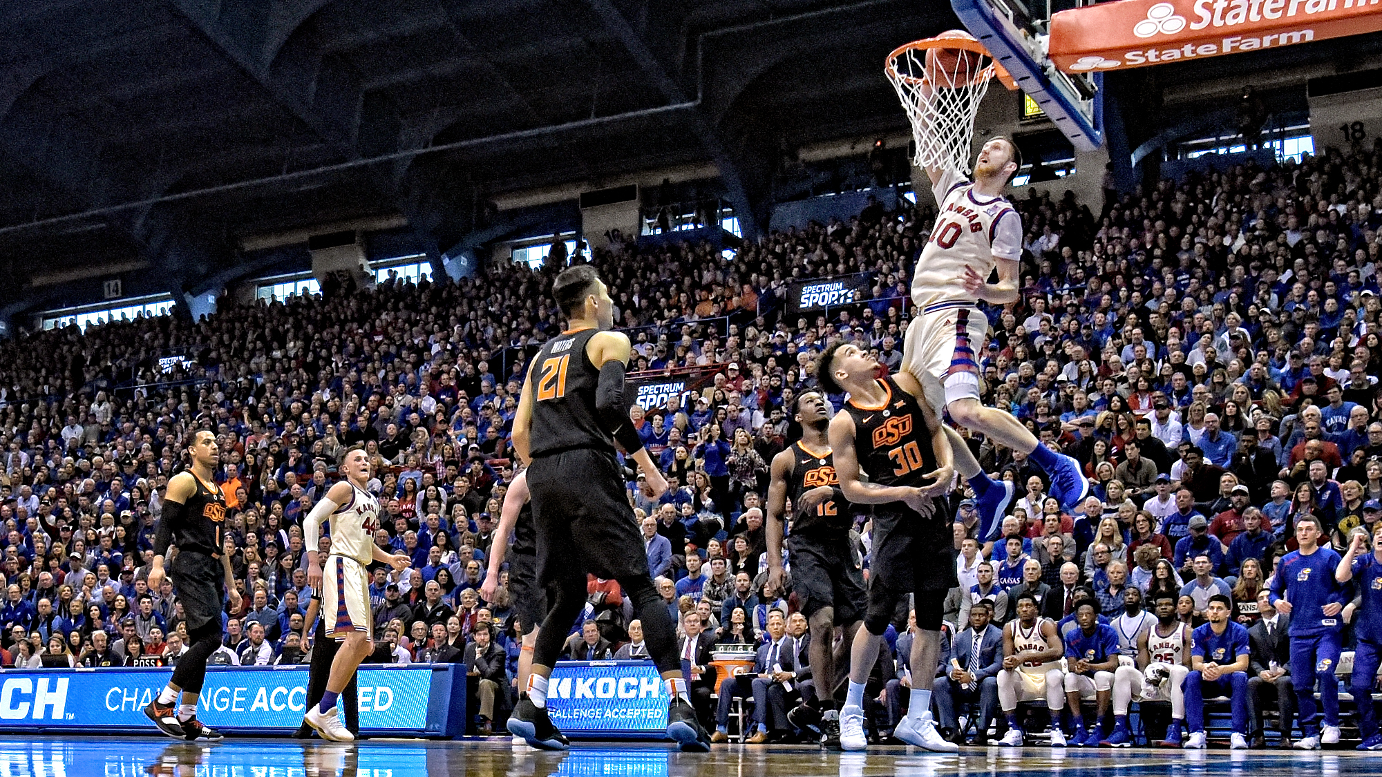 It was the third loss for the Jayhawks (18-5, 7-3) in the Phog this season, their most since the 1998-99 season. It was also their second home loss in league play.