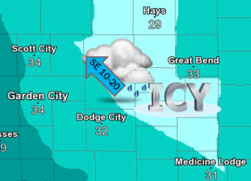 Today A slight chance of freezing drizzle before 1pm, then a slight chance of freezing rain between 1pm and 3pm. Cloudy, with a high near 31. East wind 7 to 13 mph becoming south southeast in the afternoon. Chance of precipitation is 20%.