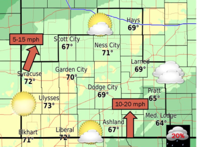 Wednesday Night Mostly cloudy, then gradually becoming clear, with a low around 23. North northwest wind 10 to 16 mph.