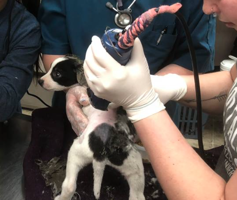 The only safe alternative was to shave off all of their paint-laden fur. Following their shave, the puppies were resting comfortably and being cared for in the shelter’s veterinary care center.