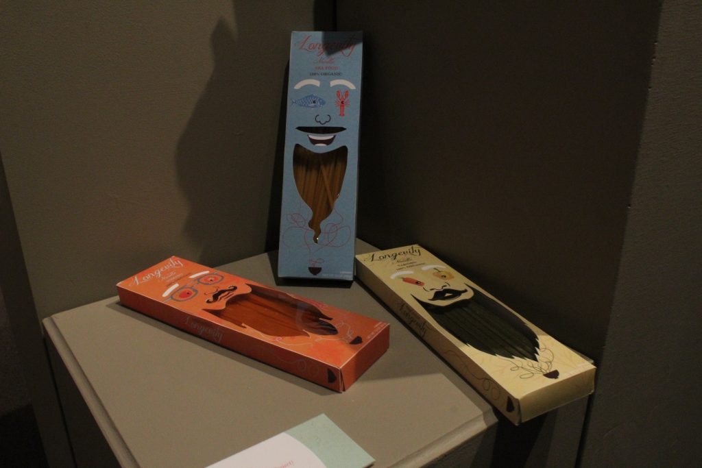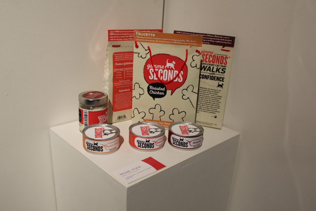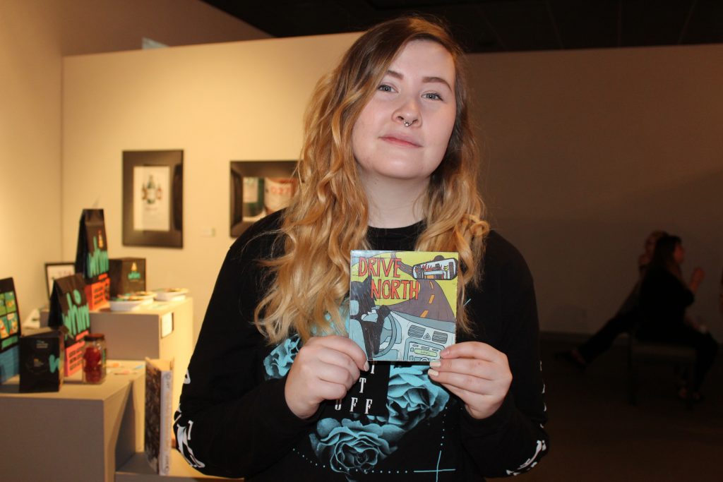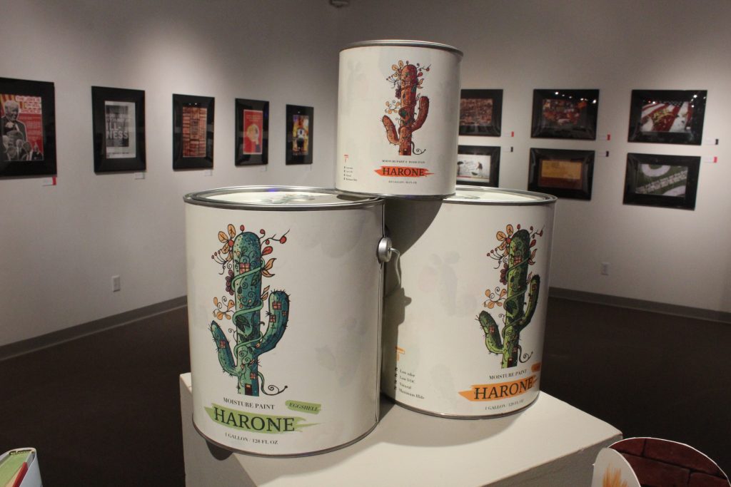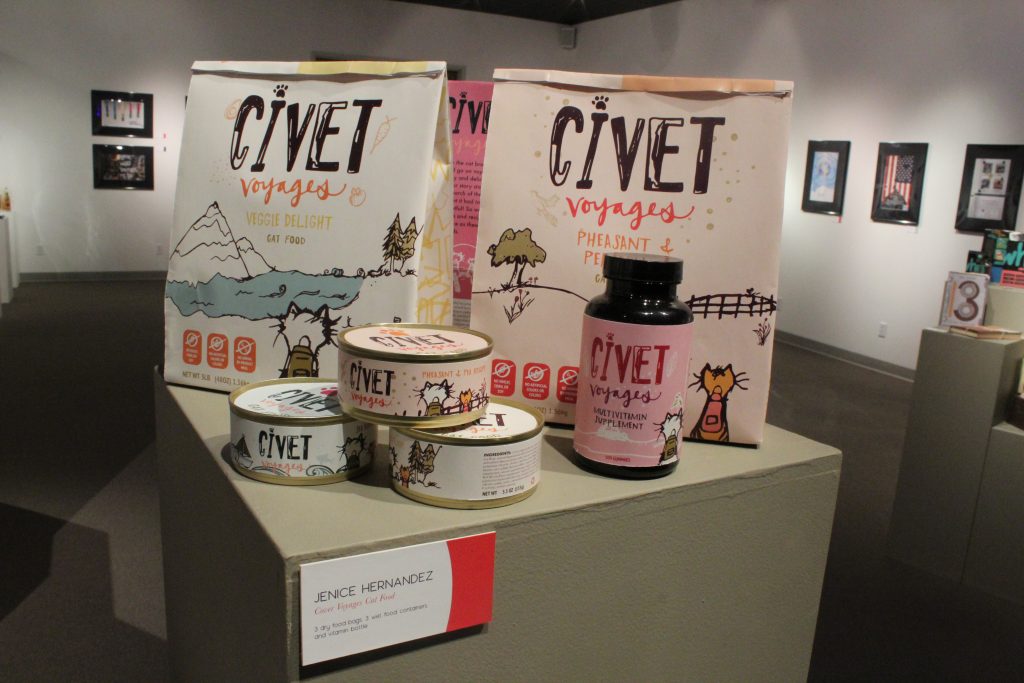 Graphic design professor and exhibit director Karrie Simpson Voth said she was proud of the amount and quality of the work for this show, especially considering this year’s small senior class. She said the students learn much from putting on the show. They design and organize every aspect of the show, including creating tags and posters, taking photos and recruiting sponsors.