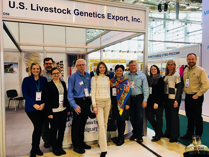 The team attended Russia’s leading exhibition for animal husbandry and animal breeding, AgroFarm, where they interacted with breeders and genetic companies to promote the use of purebred U.S. livestock genetics. The group also met with Miratorg, the Food and Agriculture Organization of the United Nations, and the Deputy Consul General at the U.S. Consulate General in St. Petersburg, and made visits to several dairy operations and Cherkizovo’s Mosselprom poultry processing operation outside of Moscow.