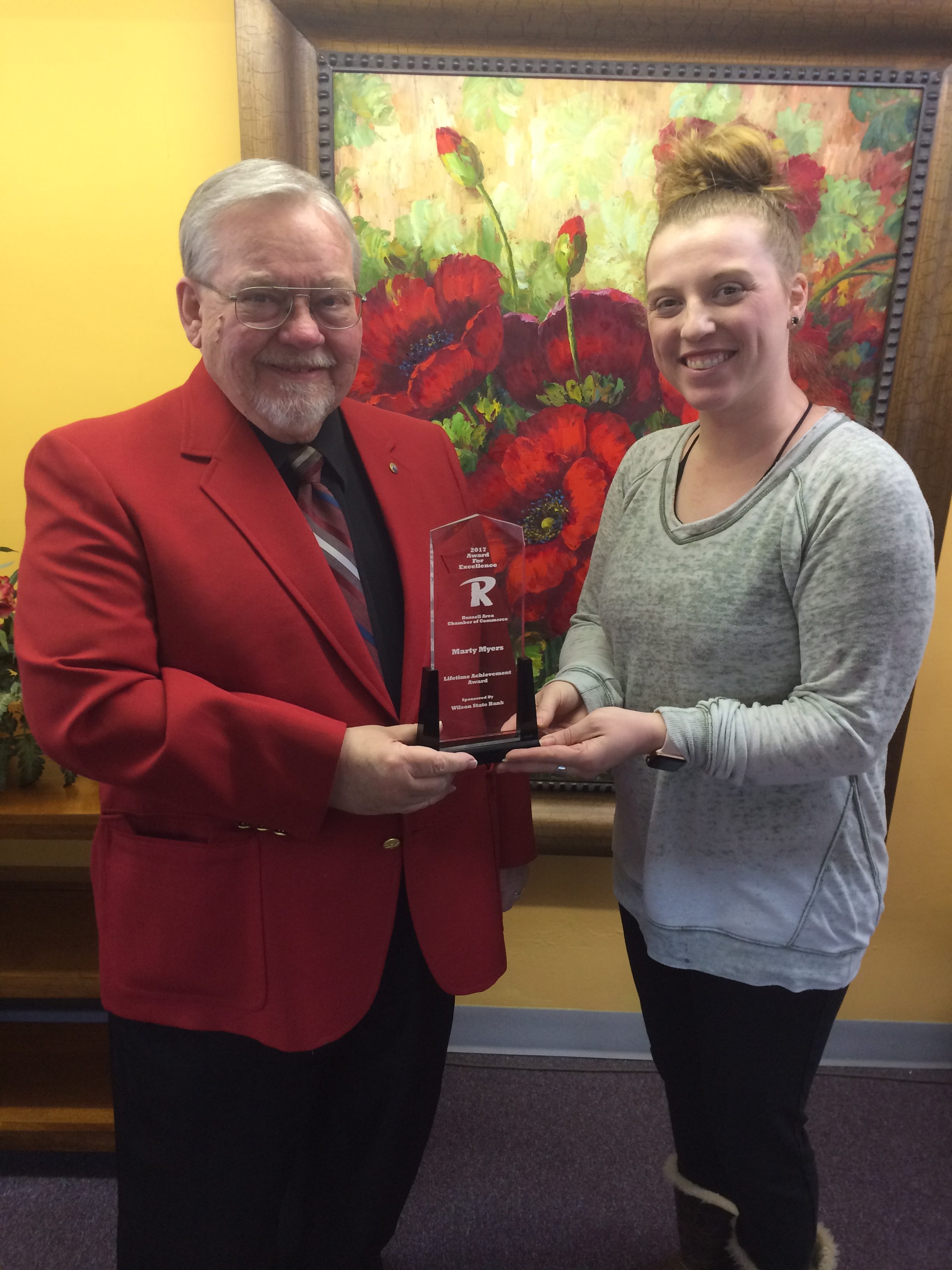 RUSSELL — Martin Myers, longtime Russell resident and pPresident of Myers Furniture Inc., was presented with the Lifetime Achievement Award in a recent banquet by the Russell Chamber of Commerce, recognizing his many years of service to his neighbors and community.