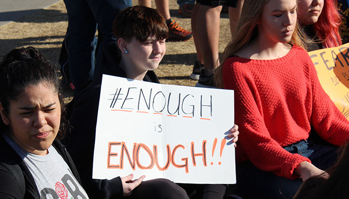 Noelia Villa, a senior at HHS who participated in the protest, said there have been enough school shootings, and something needs to be done.