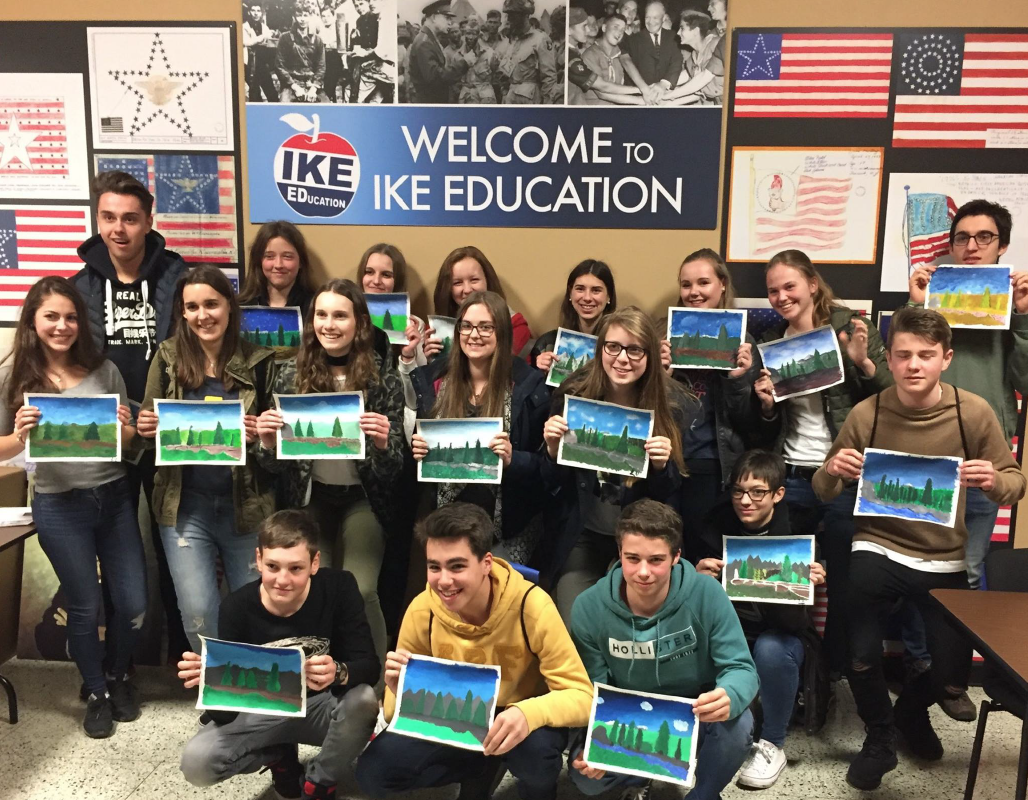 Over the past year, K-12 students from throughout Kansas and exchange students from Germany have participated in this interactive program, highlighting a favorite pastime of Dwight D. Eisenhower. Students learn about Ike’s art legacy — his protection of cultural pieces from Nazi looters during World War II and his use of painting as a means to balance his life’s stresses. Students then complete one of four paintings left unfinished by Ike when he passed away.