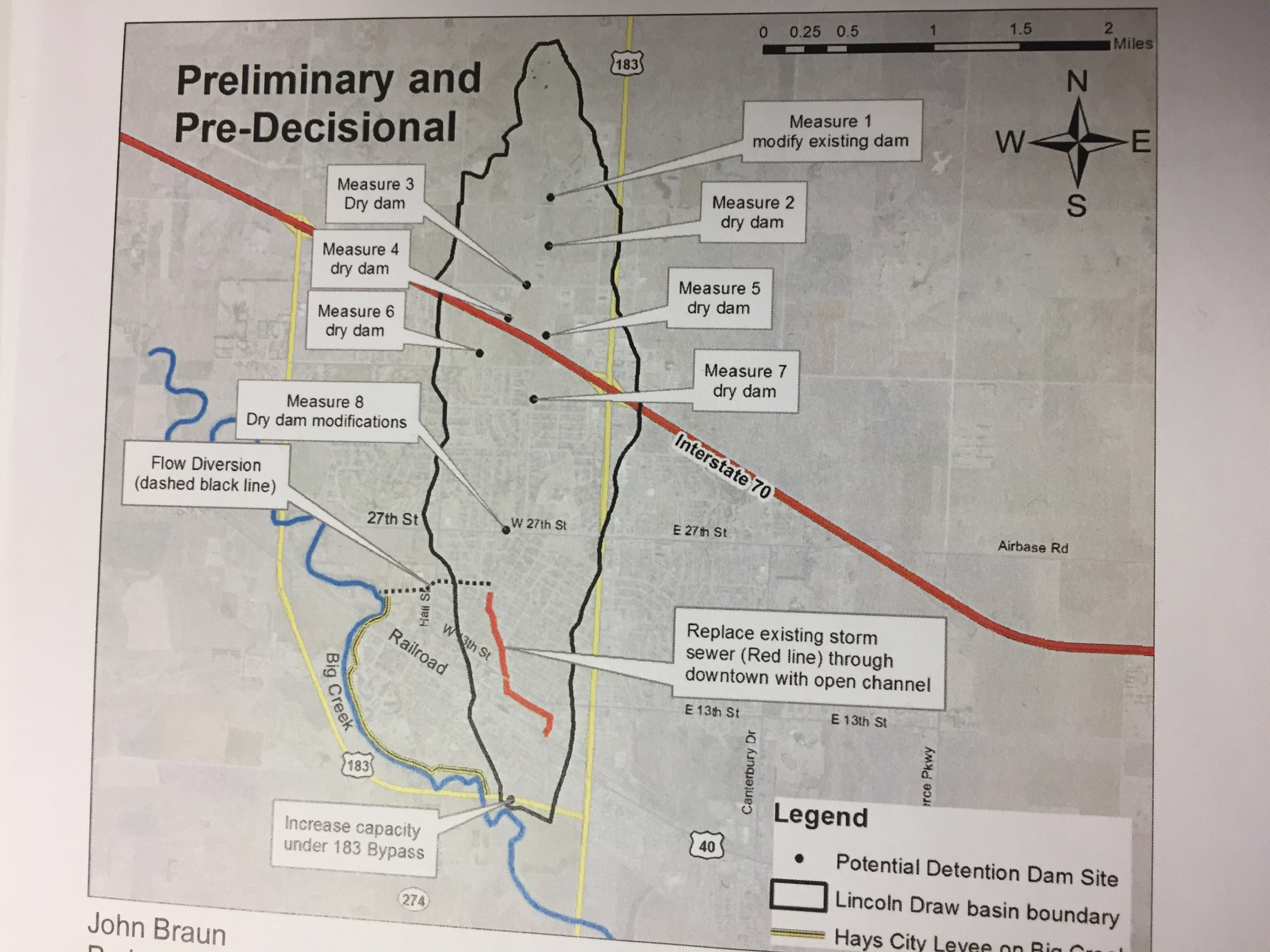 “It starts about a half-mile north of 55th Street and cuts through the downtown area, the most developed area of the city,” Braun said. “Besides the actual flooding of Big Creek, a large rain event over the Lincoln Draw Watershed has the greatest potential for flood damages in the city of Hays.”