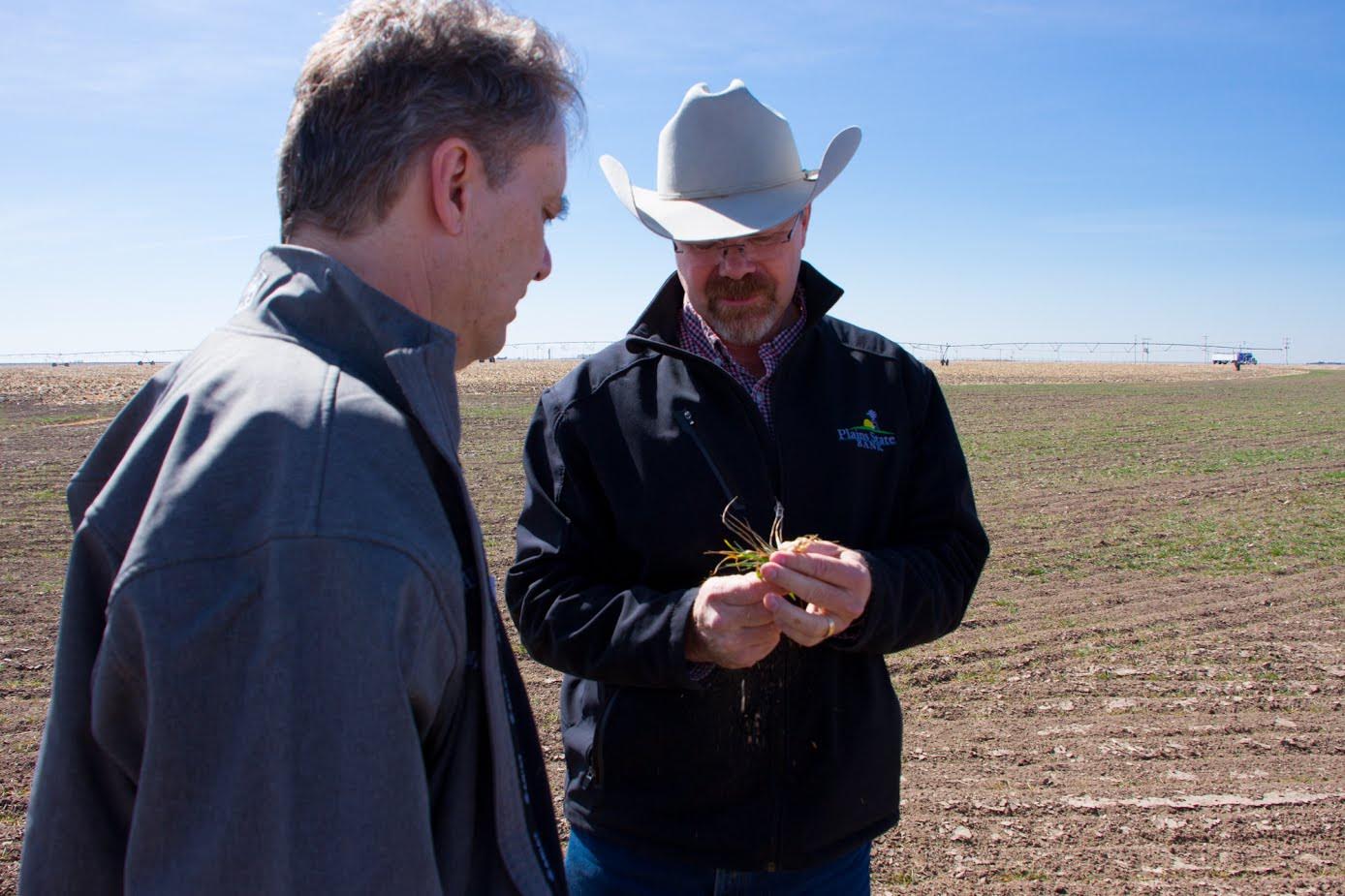 The governor started the tour at the Clawson Ranch Partnership just west of Meade, Kansas, where David Clawson showed the governor winter wheat fields that are struggling to come out of dormancy due to the extreme lack of moisture in the soil.