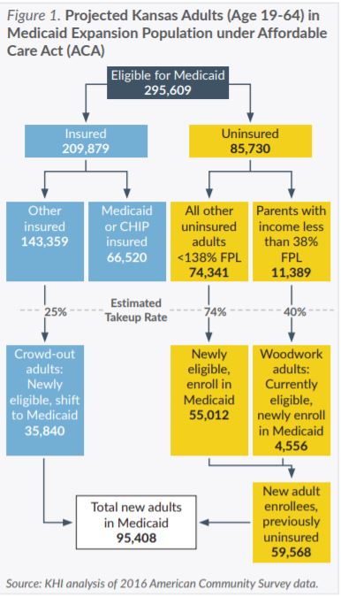 • Expanding Medicaid would add an estimated 145,000 new beneficiaries, including about 95,000 adults age 19−64 and nearly 50,000 children, to the KanCare program.
