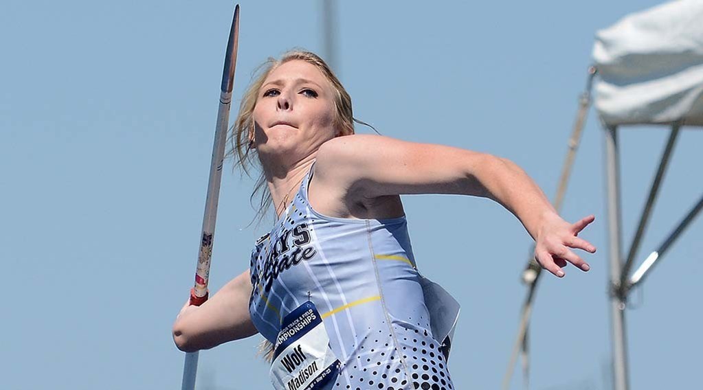Wolf automatically qualified for the 2018 NCAA Division II Outdoor Track and Field Championships after a heave of 167-3, besting teammate and runner-up Alexcia Deutscher by more than 10 feet. Sitting in second entering her sixth and final throw, the graduate student hurled the spear more than 11 feet past her previous long throw of the day. Wolf currently tops the performance chart in NCAA Division II and owns the eighth-longest toss across all NCAA ranks so far this season.