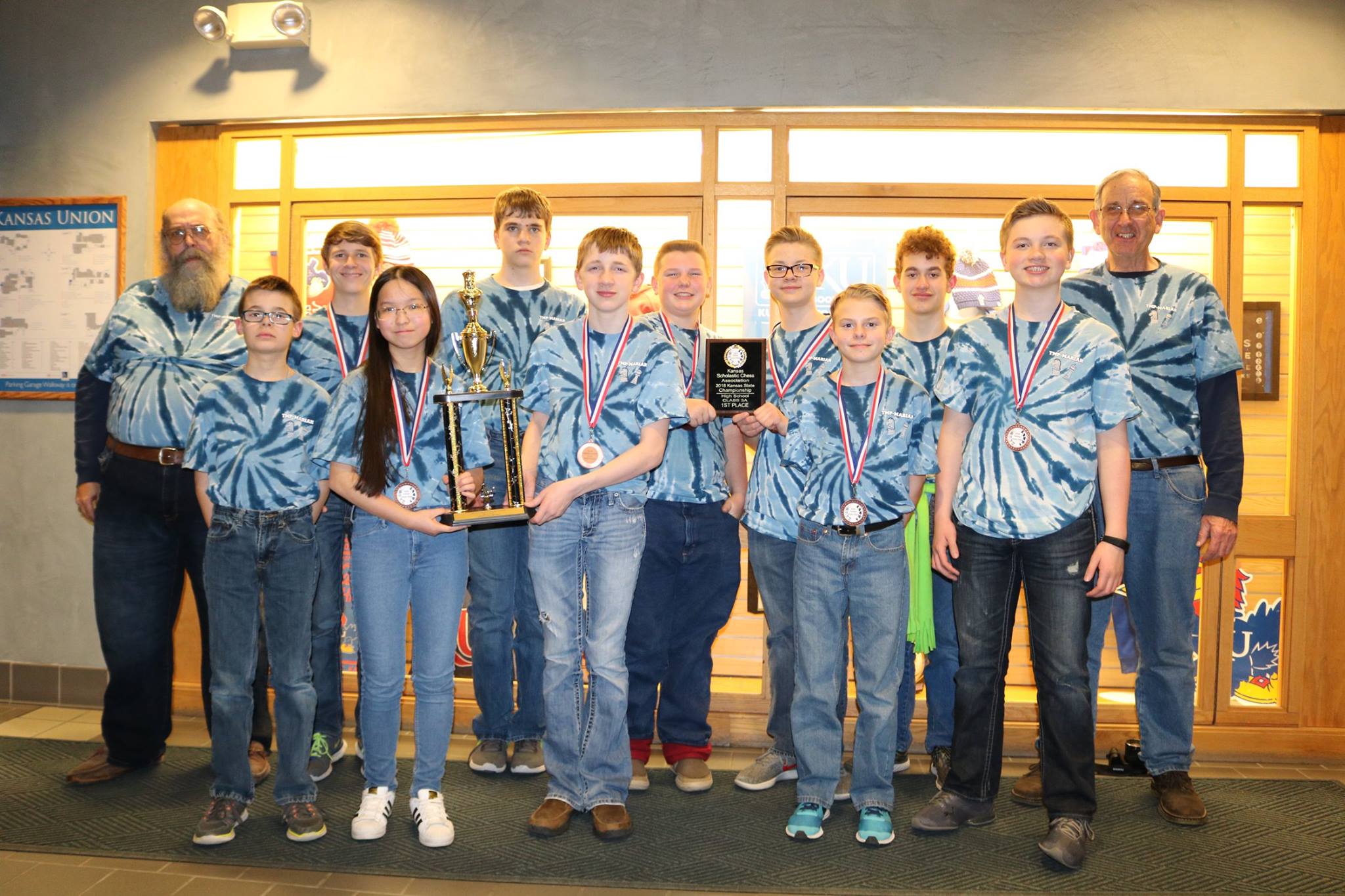 The Monarch Junior High also fared well in the state event, finishing seventh in a field of 26 school teams with 15 points of a possible 24. Leading the team were Jensen Brull (Grade 7), Nicklas Helget (Grade 8), and Tate Dinkel (Grade 7), each with 4 points. Braydon Binder (Grade 7) added 3 points to fill out the team score. Also competing were Logan Hess (Grade 8, 3.0 points), Connor Hilger (Grade 7, 3.0 points) and Treighton Dunn (Grade 7, 2.0 points). The champion Junior High team was Lawrence Southwest Middle School with 18 points.