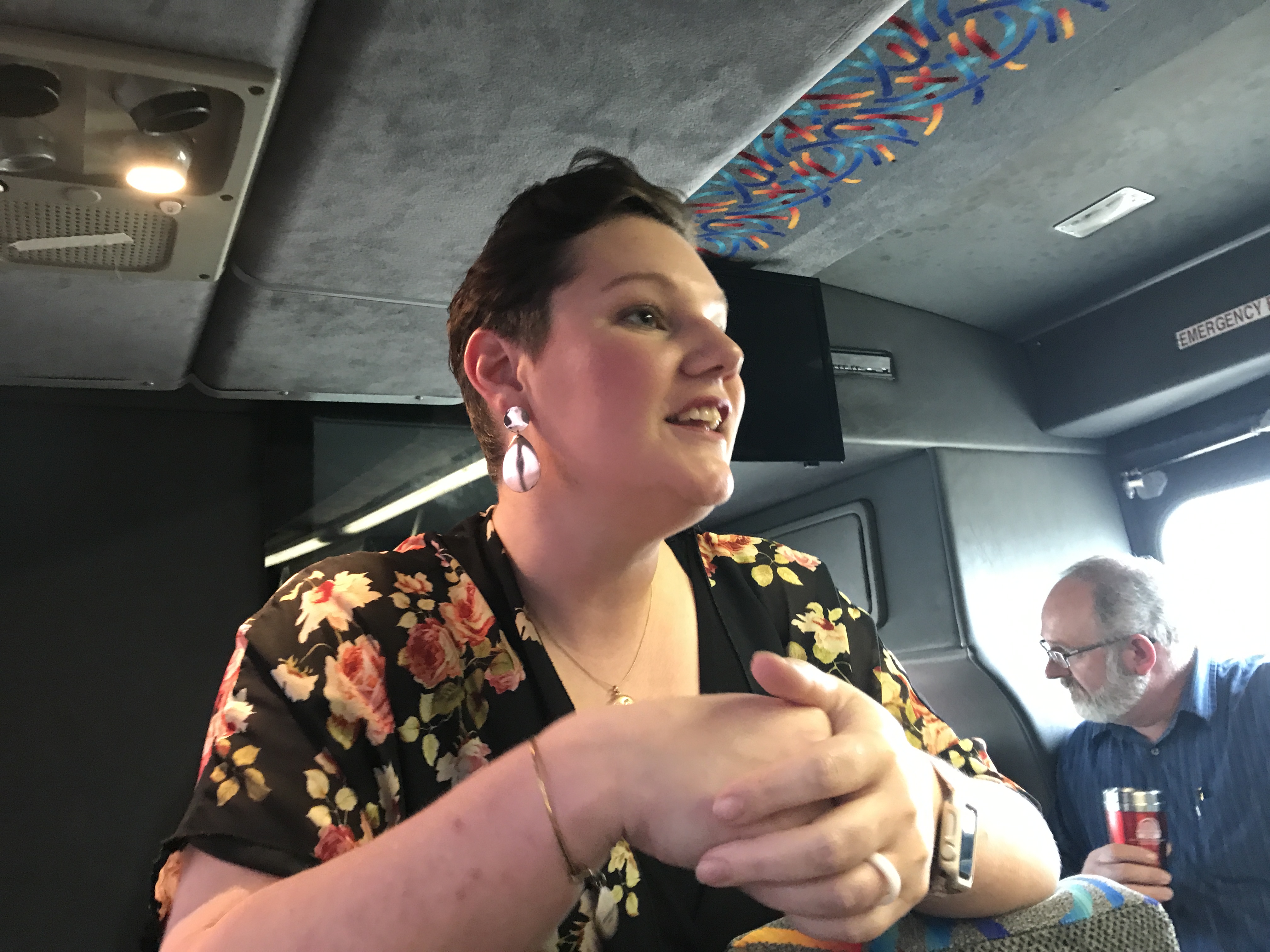 Sara Bloom, executive director of Downtown Hays Development Corp., talked about what is on the horizon for downtown during a tour with local officials Monday afternoon as a part of the second annual Community Cruise.