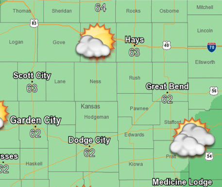 FridaySunny, with a high near 65. South southwest wind 6 to 10 mph.