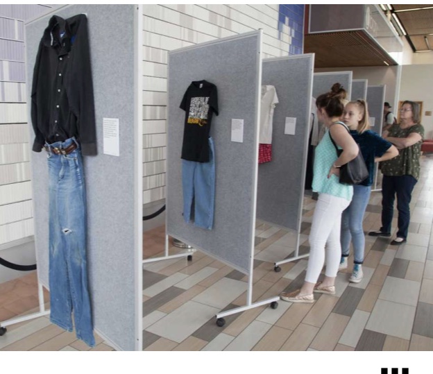 The art installation features a collection of articles of clothing recreated to represent clothing worn by survivors of sexual assault at the time of their assault. The question, “What were you wearing” is pervasive for many, if not most, survivors.