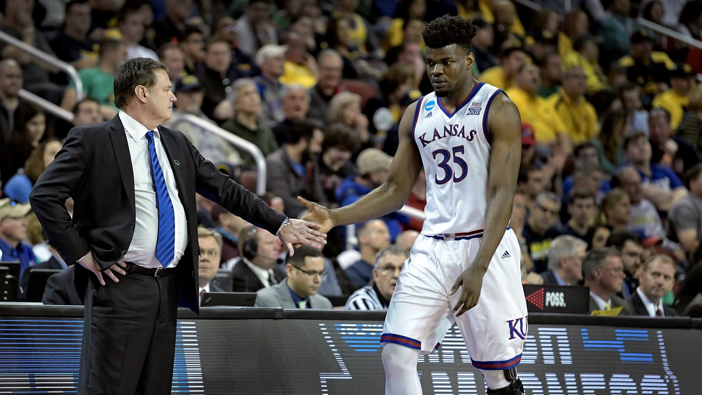 The 7-foot, 280-pound Azubuike missed most of his freshman season with a wrist injury, but was often dominant in helping the Jayhawks to the Final Four this past year. He averaged 13 points and seven rebounds while shooting 77 percent from the field, the second-best mark in NCAA history.