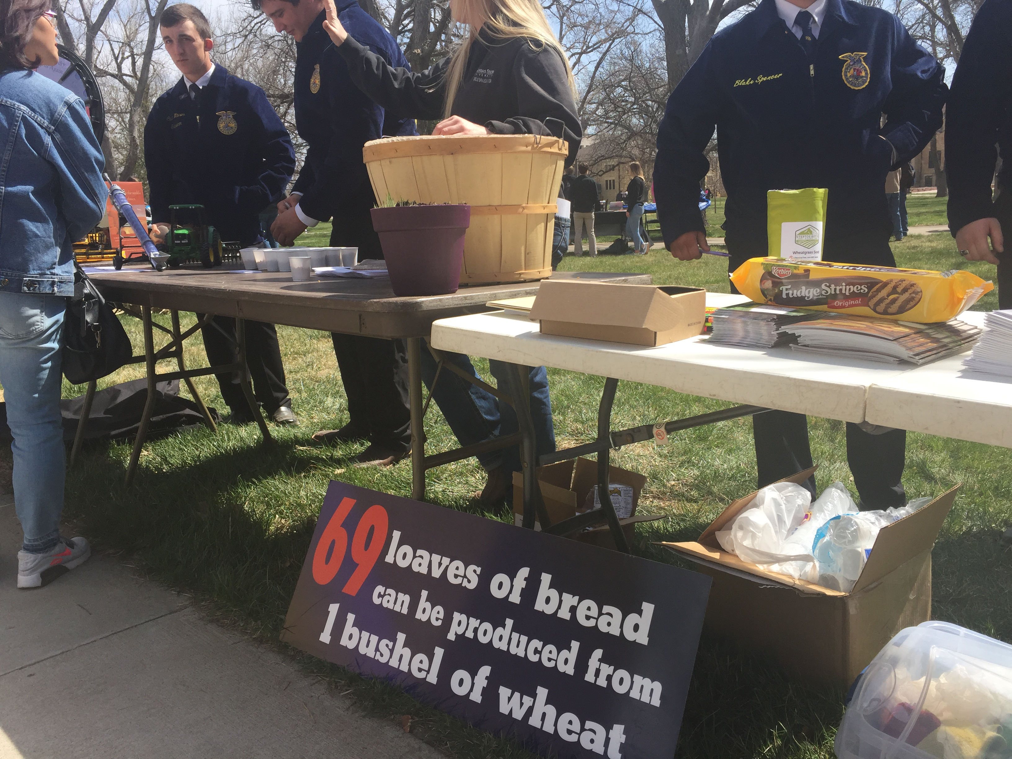 Wheat was just one of the many commodities visitors could learn about in the FHSU quad Tuesday where they enjoyed a free beef meal on a perfect spring morning.