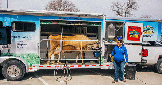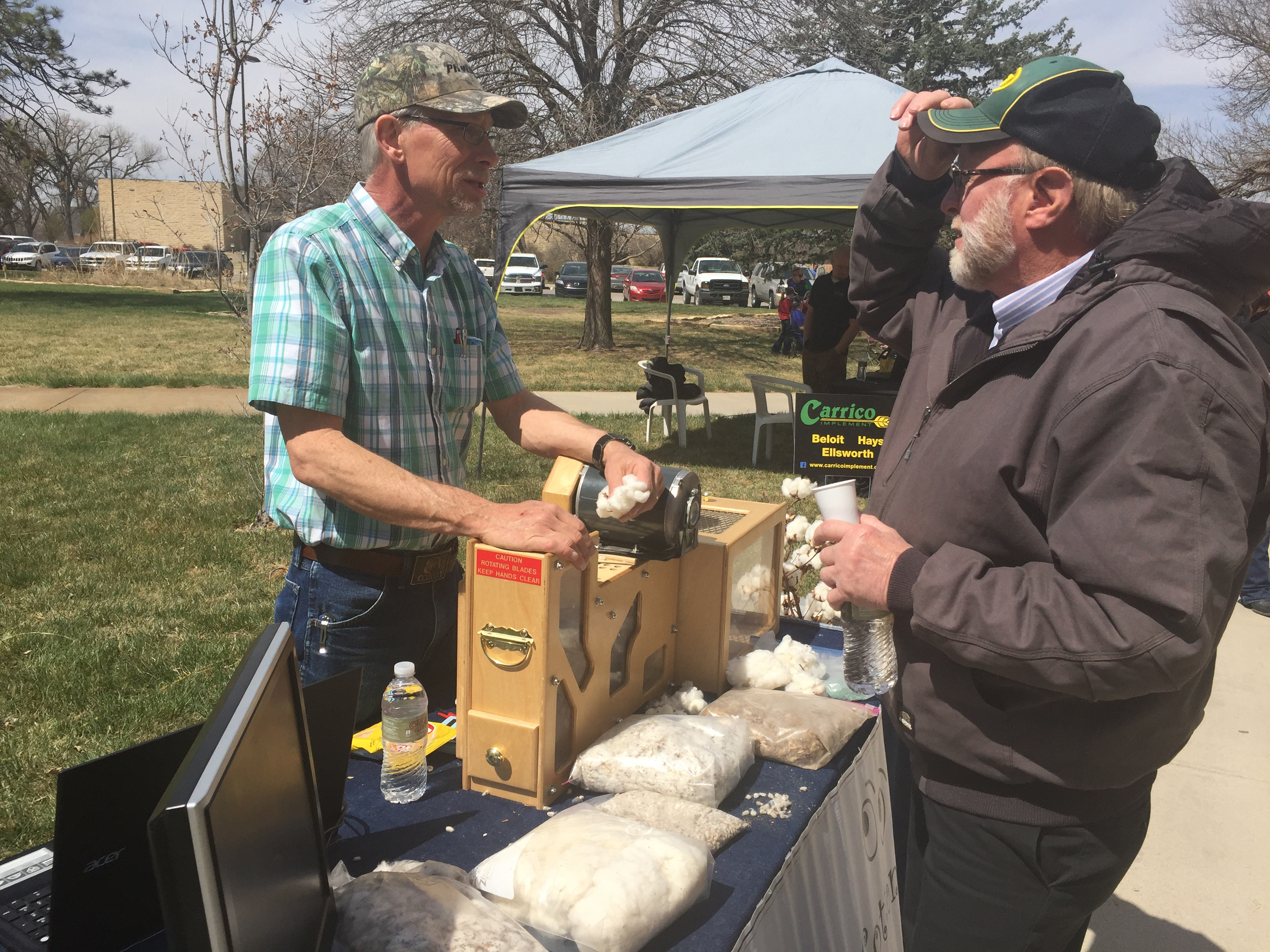 An old fashioned miniature cotton gin was in use by the Southern Kansas Cotton Growers Coop and the Southwest Dairy Museum brought their mobile cow milking unit.