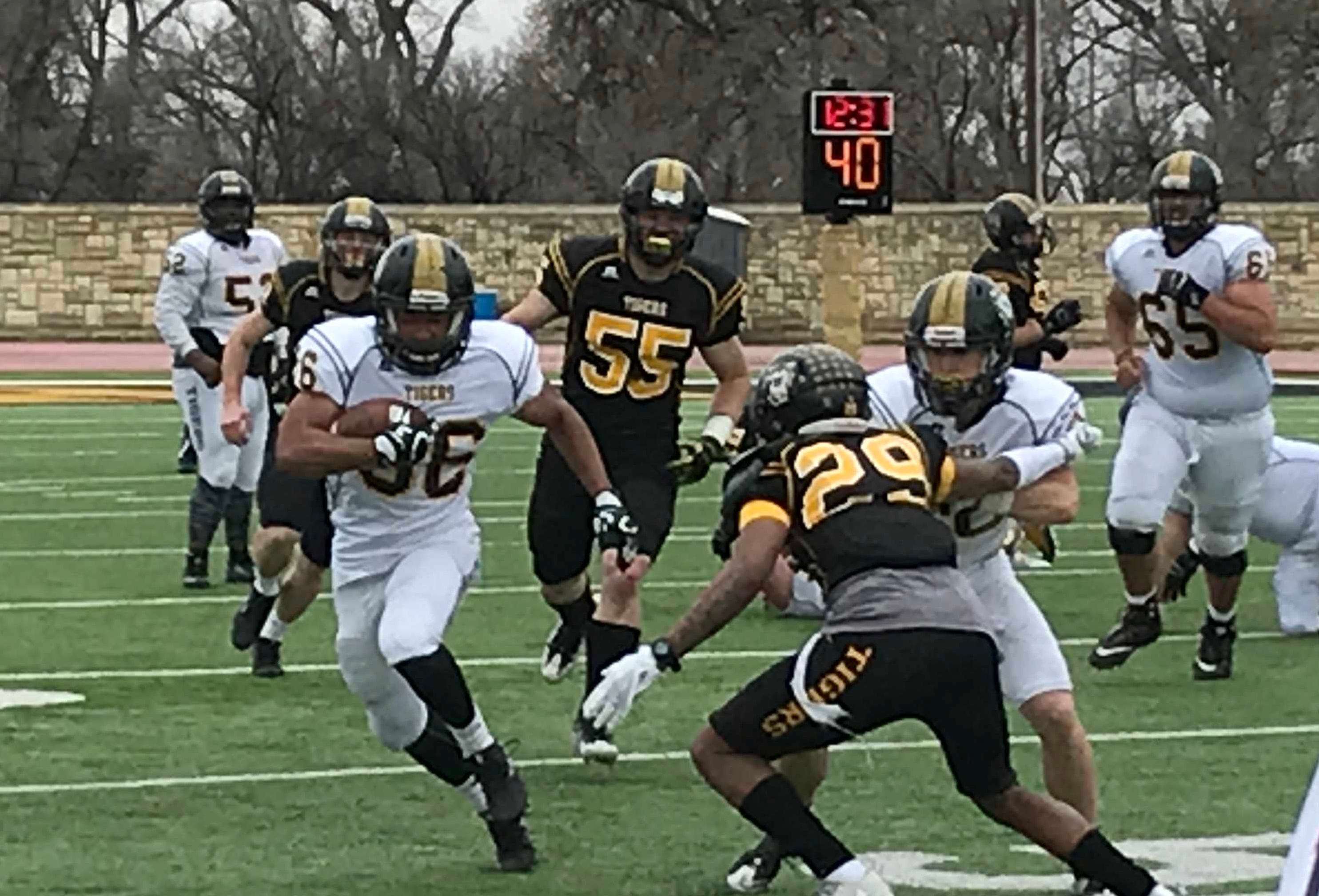 HAYS, Kan. – The Fort Hays State football team wrapped up their spring practices with their annual Spring Scrimmage on a cool and damp Saturday afternoon at Lewis Field. The White Team, which was comprised of the No. 1 offense and No. 2 defense beat the Black Team (No. 1 defense and No. 2 offense) 30-7.