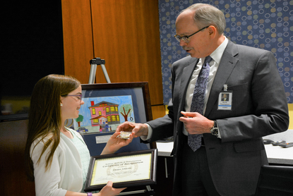 Emma’s parents and her younger brother recently attended a day of events honoring her selection as the 2018 contest winner. Emma and her family met Attorney General Derek Schmidt, KBI Director Kirk Thompson, and learned about KBI investigations through fingerprinting and crime scene simulations.