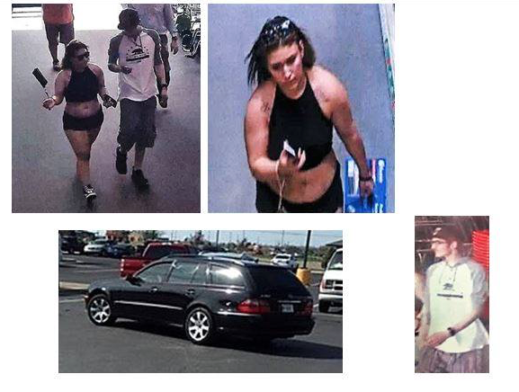 Both suspects got into a Black Mercedes Wagon with a Montana license plate and left southbound through the parking lot.