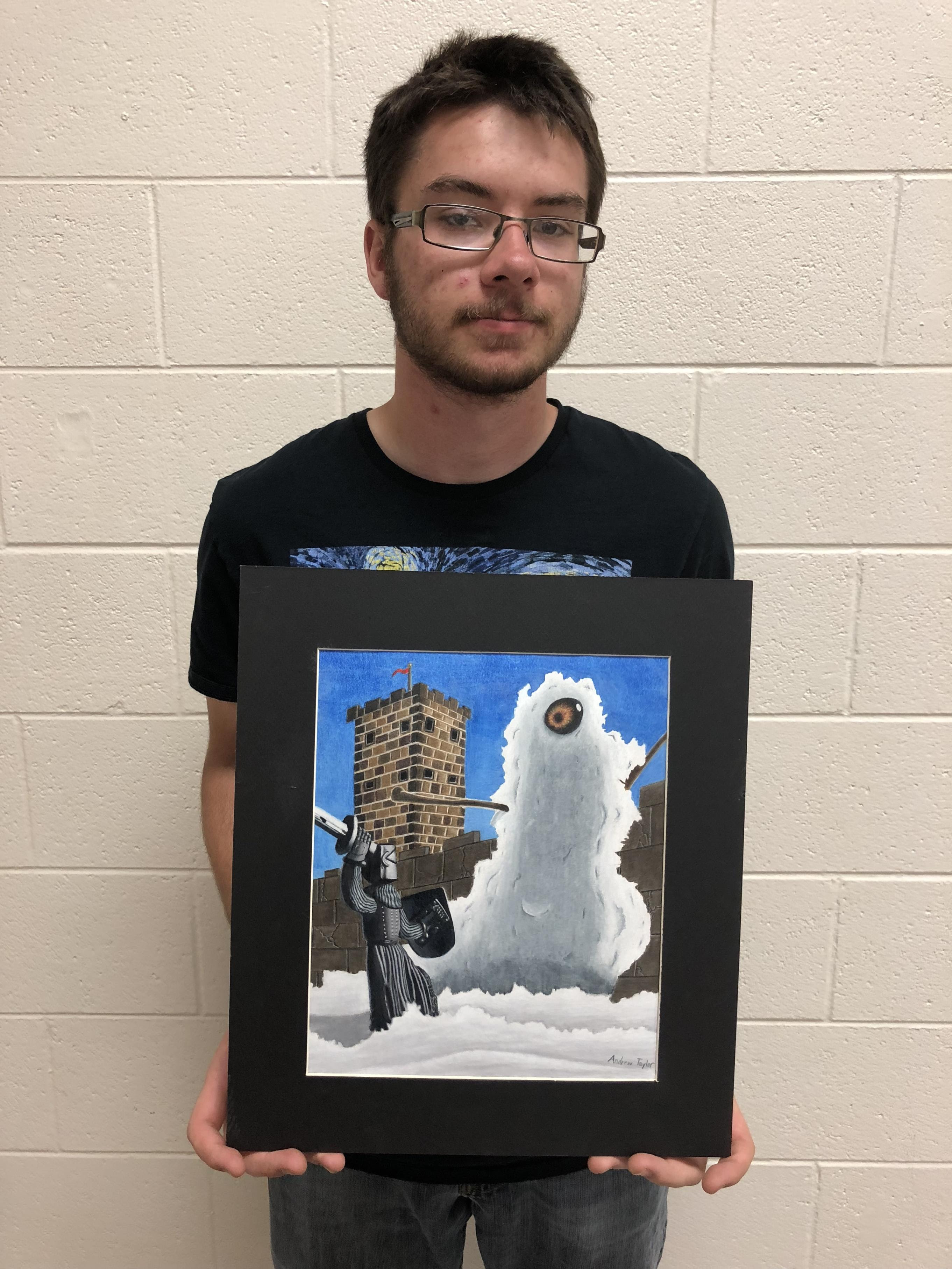 Andrew Taylor received second place for his piece “Knight Vs. Ice Golem.” Taylor is from Grainfield.