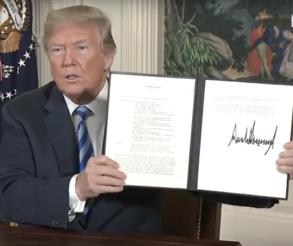 Trump’s comments Tuesday come as he announces plans to follow through on his campaign threat to pull out of the landmark nuclear accord with Iran during a televised address at the White House.