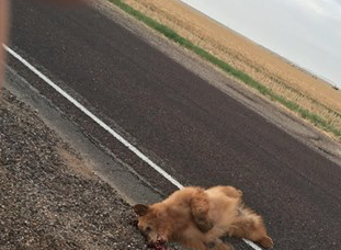 The bear died Monday in an accidental crash on Highway 56 near Elkhart in Morton County, about 1.5 miles from the Oklahoma border.
