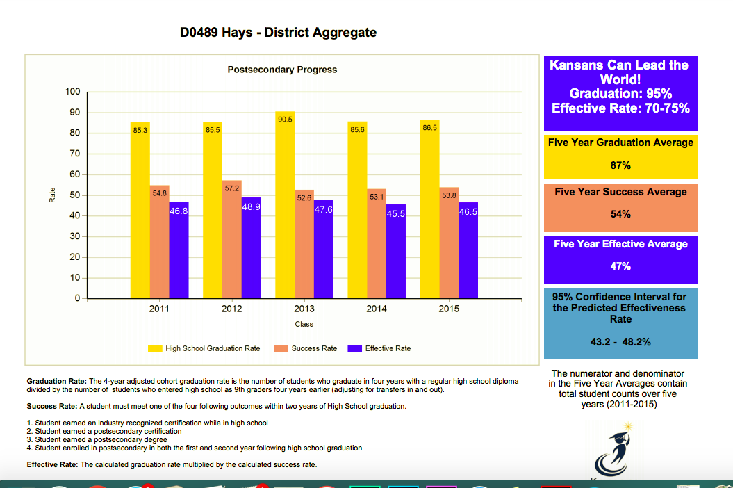 The 47 percent post-secondary effectiveness rate was within the effectiveness rate the state would expect considering a number of risk factors experienced by Hays students.