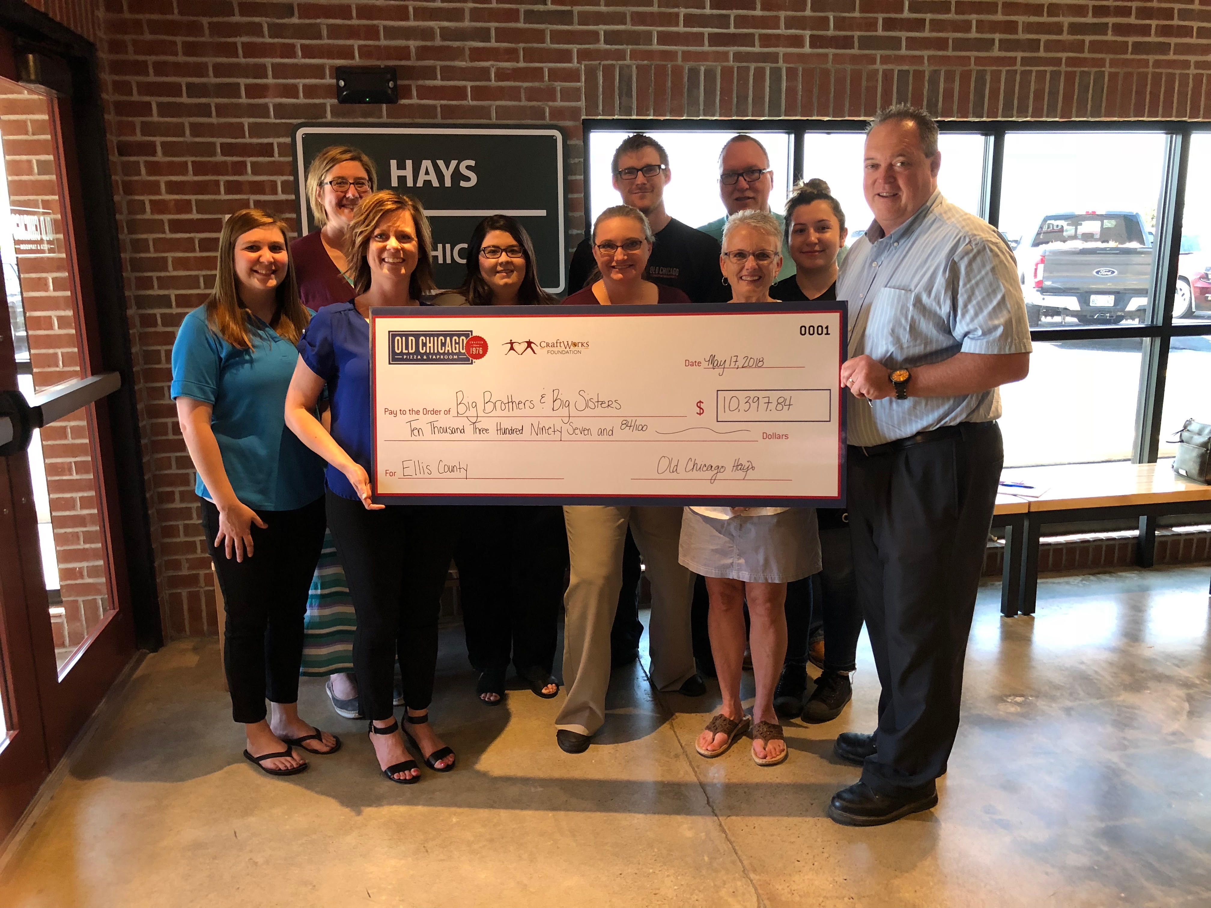 Prior to its opening date, the restaurant hosted several soft openings. During those soft openings, Old Chicago donated 100 percent of the alcoholic beverage sales to Kansas Big Brothers Big Sisters (BBBS) of Ellis County. Old Chicago also collected donations from guests throughout the pre-opening events.