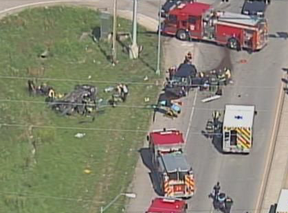 KANSAS CITY (AP) – A police chase in suburban Kansas City ended with four people dead, four seriously injured and a driver charged with murder.