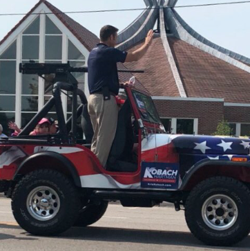 The sight of Kobach in the red, white and blue-decorated jeep at the Old Shawnee Days parade Saturday morning stunned some onlookers.