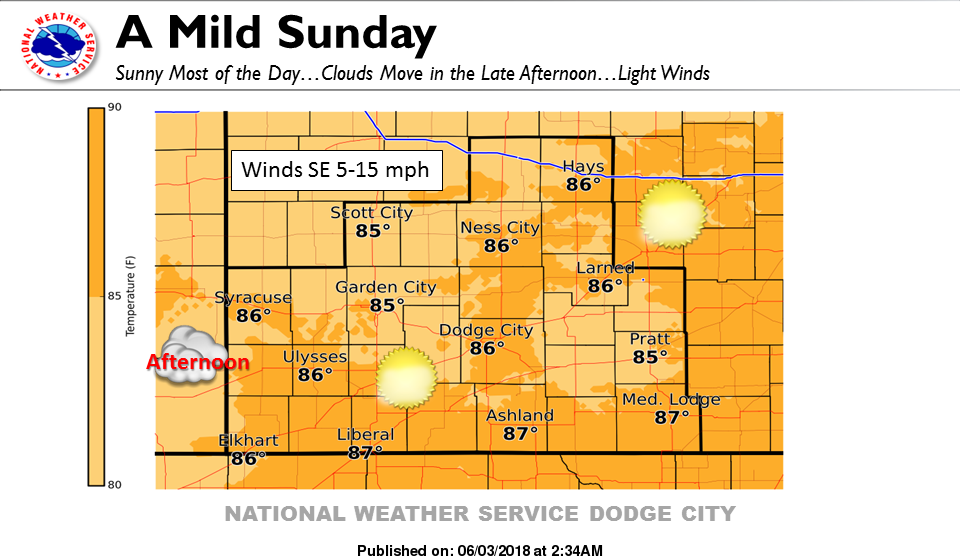 A 20 percent chance of showers and thunderstorms. Partly sunny, with a high near 82. South wind 8 to 17 mph, with gusts as high as 28 mph.