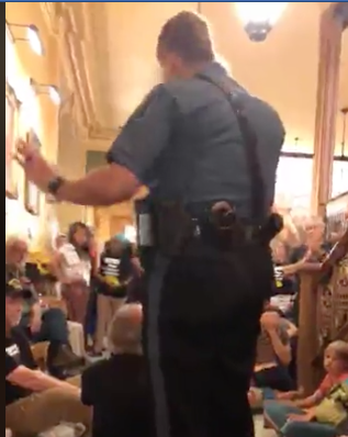 The people arrested Monday for misdemeanor criminal trespassing were part of the Poor People’s Campaign. They were protesting over health care issues and environmental problems.