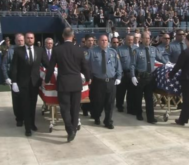 Wyandotte County Sheriff Don Ash said Thursday during a joint service for Theresa King and Patrick Rohrer at a soccer stadium in Kansas City, Kansas, that they “literally put their lives between a cold-blooded killer and the citizens they swore an oath to protect.